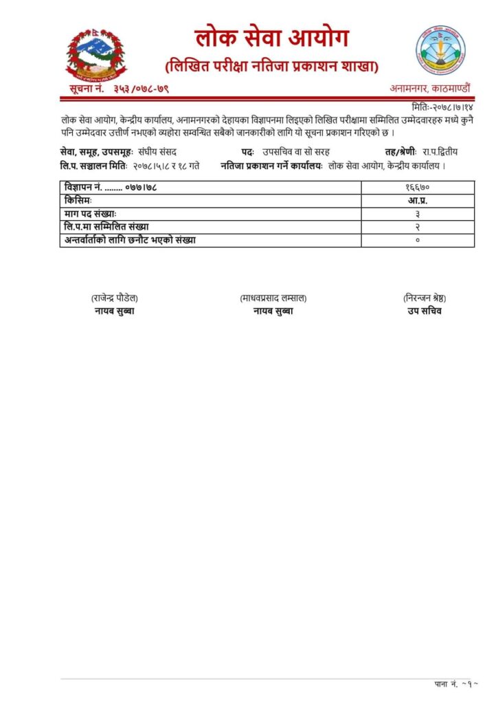 आयोगले संघीय संसदमा दरबन्दी हुने गरेर उपसचिव वा सोसरहको पदका लागि लिएको लिखित परीक्षामा कोही पनि उत्तीर्ण हुन नसकेको जनाएको छ।