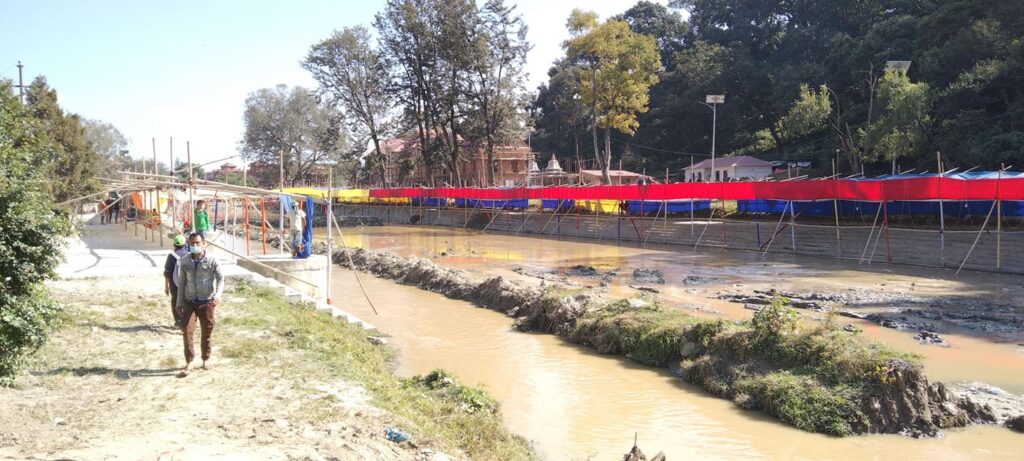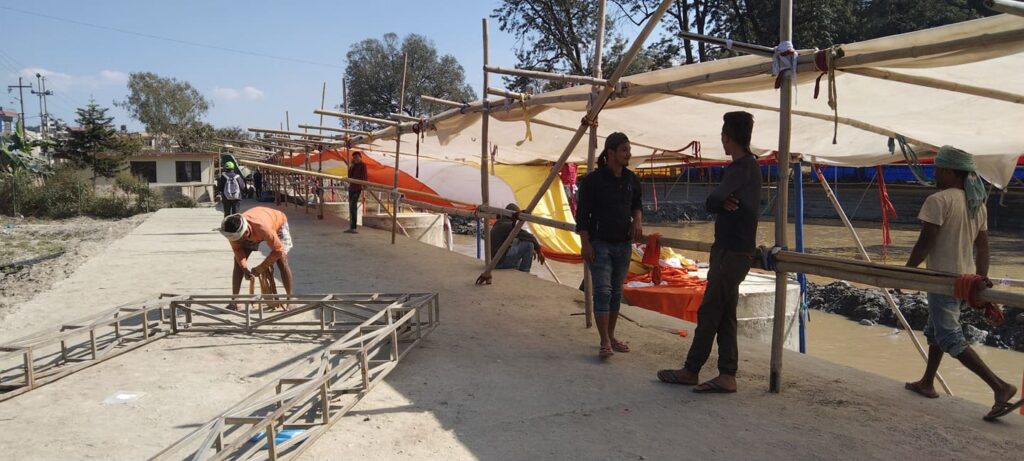 काठमाडौँ गौरीघाटस्थित छठको पूजाको तयारी फोटोमा ।