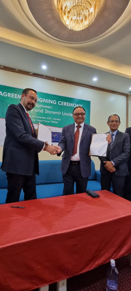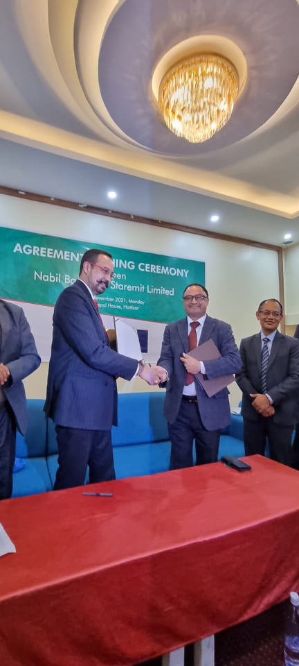 नेपालको राजधानी काठमाण्डौंको हात्तिसार स्थित नेपाल हाउस रेष्टुरेन्टमा मंसीर ६ गते सोमबार आयोजित एक विशेष समारोहको विच स्टार रेमिटका अध्यक्ष रुद्र शर्मा र नविल बैंकका कार्यकारी अधिकृत –सिइओ) अनिल केशरी शाह विच सो सम्बन्धमा हस्ताक्षर भएको हो ।