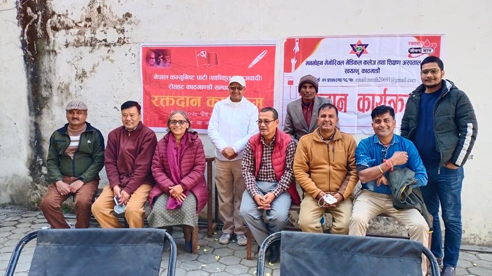 काठमाडौ-नेकपा एकीकृत समाजवादी रौतहट काठमाडौ सम्पर्क मञ्चले आज काठमाडौमा रक्तदान कार्यक्रम आयोजना गरेको छ ।