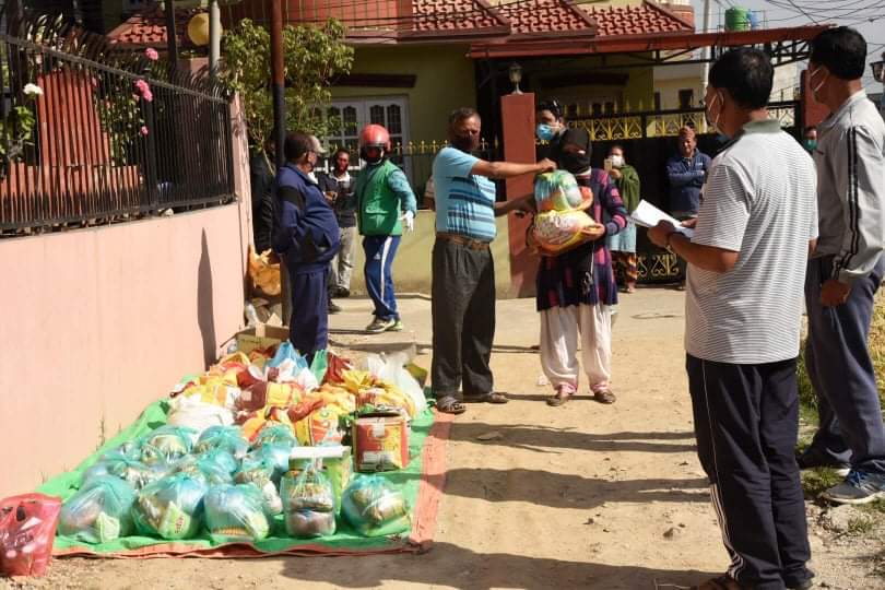 भक्तपुर। सुर्य नगर टोल बिकास समाजले आज भक्तपुरका सन्चरकर्मिहरुलाई सिनिटाइजर,मास्क र ग्लोबस हस्तान्तरण गरेकाे छ भने टोल बिकास समाजले अति बिपन्न 28 परिवारलाई खाद्य सामग्री सहितको राहत उपलब्ध गराएकाे छ ।