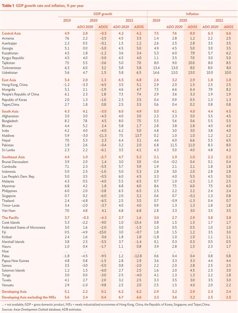 पछिल्लो चरणमा औद्योगिकरण भएका हङकङ, चीन, कोरिया, सिंगापुर, ताइपेइ, चीनलाई छाडेर विकासशील एसियाको आर्थिक वृद्धिदर सन् २०२० मा ०.४ प्रतिशत र आगामी वर्ष ६.६ प्रतिशत हुनेछ ।