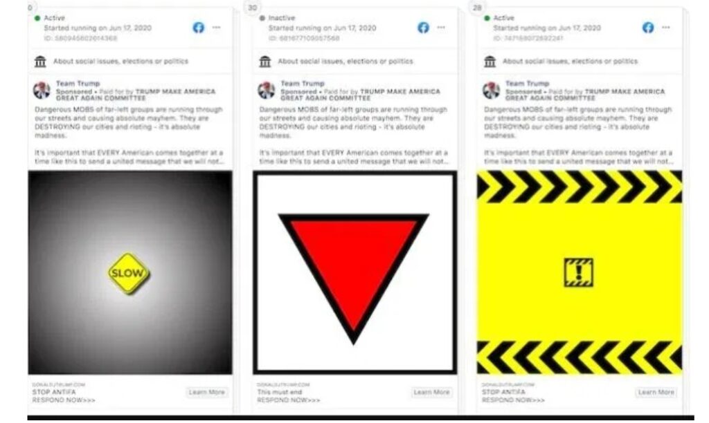 ट्रम्पले राखेका ती विज्ञापन पोष्टमा नाजी पार्टीको घृणाको संकेत जस्तै संकेत राखिएको थियो ।