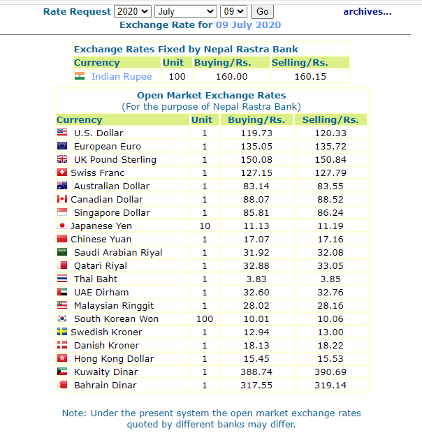 काठमाडौँ । नेपाल राष्ट्र बैंकले बिहीबार आज मा जारी गरेको विनिमयदरका अनुसार अमेरिकी डलर एकको खरिददर १ सय १९ रुपैयाँ ७३ पैसा र बिक्रीदर १ सय २० रुपैयाँ ३३ पैसा रहेको छ।
