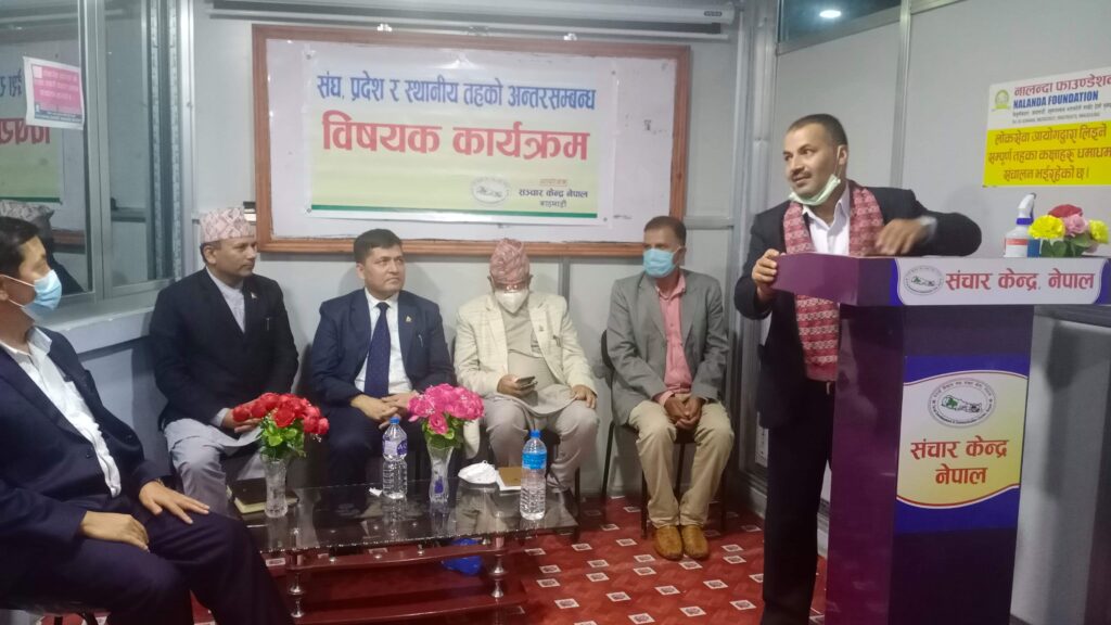 संघीयता अनुसार सरकारहरु सञ्चालन भईरहँदा सिंहदरबारको अधिकार गाउँ गाउँसम्म पु¥याउने नीति लिएपनि त्यसको पूर्ण कार्यन्वयन नभईसकेको अवस्था विज्ञहरुको छ । यसै सन्दर्भमा केन्द्रित भई आज तराई विकास तथा सञ्चार केन्द्र नेपालले विजुलीबजारस्थित सञ्चार केन्द्रको हलमा ‘संघ, प्रदेश र स्थानीय तहको अन्तरसम्बन्ध’ विषयक कार्यक्रम सम्पन्न गरेको छ ।