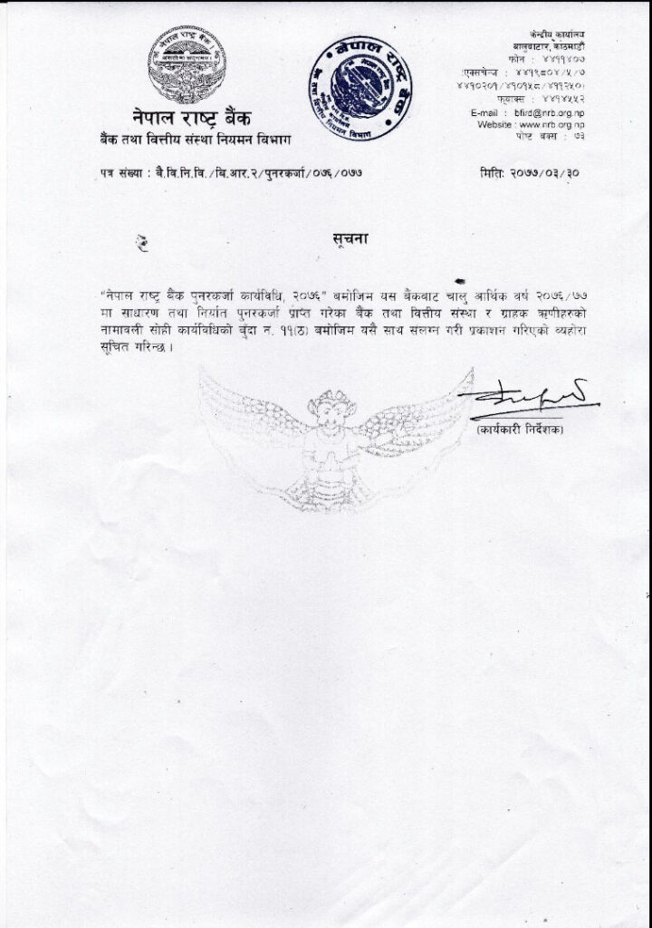 केन्द्रीय बैंकले कोभिड १९ ले गर्दा साँवा र ब्याजसमेत भुक्तानी गर्न नसक्ने अवस्थाका ऋणीहरुलाई पुनर्कर्जा दिने भएको हो। बैंकहरुले पुनर्कर्जाको आवश्यकता पर्ने ऋणीहरुसँग निवेदन माग गरेका थिए। बैंकहरुले ऋणीको निवेदनलाई आन्तरिक मूल्यांकनपछि राष्ट्र बैंकसँग प्रस्ताव लैजाने व्यवस्था छ । सोही अनुसार बैंकहरुले बुझाएको विवरणका आधारमा राष्ट्र बैंकले पुनर्कर्जा दिने निर्णय गरेको हो।
