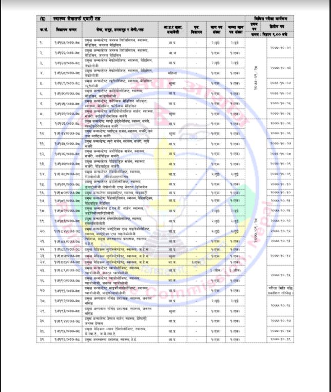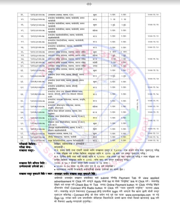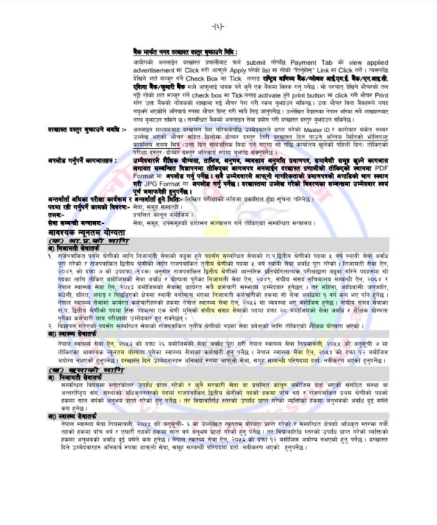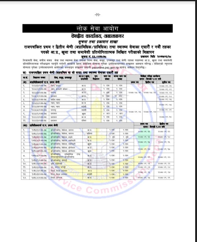 निजामती सेवा, सङ्घीय संसद् सेवा तथा स्वास्थ्य सेवा तर्फ गरी खुलेको विज्ञापनमा योग्यता पुगेका उम्मेदवारहरूले कार्तिक १८ सम्म आवेदन दिन सक्नेछन् । आवेदन आयोगको वेवसाईटमार्फत भर्न सकिने छ ।