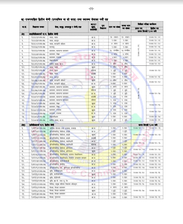 त्यसैगरी सहसचिवतर्फ एक सय ६३ जना बढुवा र १९ जना खुल्लातर्फ गरी जम्मा एक सय ८२ पदमा विज्ञापन भएको छ । जसमध्ये निजामती तर्फ बढुवा ९५ जना र खुल्ला १० जना, संसदतर्फ बढुवा ३ जना र स्वास्थ्यतर्फ ६५ जना बढुवा र ९ जना खुल्ला गरी ७४ पदमा विज्ञापन भएको छ ।