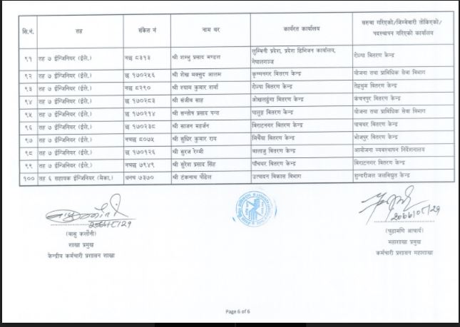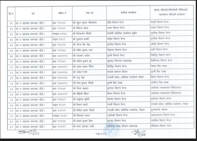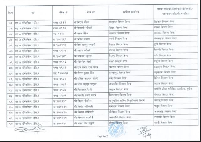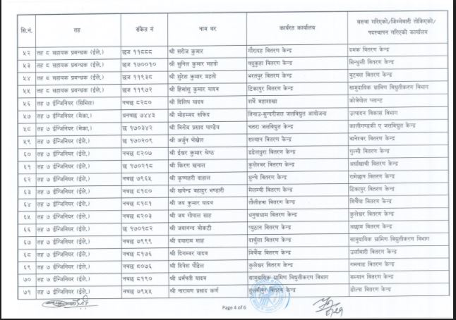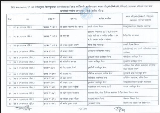 मङ्सिर २१ गतेको निर्णय अनुसार विभिन्न तहका कर्मचारी सरुवा, काज, तथा पदस्थापन गरिएको प्राधिकरणले जनाएको छ ।