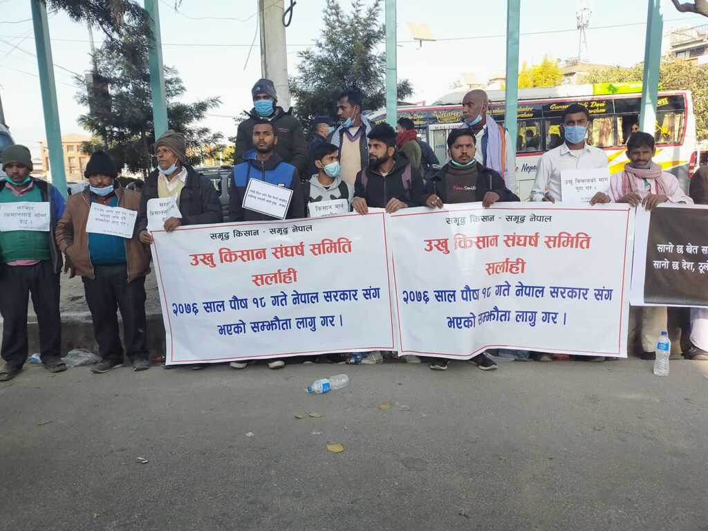 अर्काेतर्फ उखु किसानको आन्दोलन चलिरहँदा उद्योग मन्त्री लेखराज भट्टले किसानको वक्यौता नर्तिने उद्योगीलाई बचाउ गर्न उच्चतहका नेताबाट दबाब आएको बताउनुभएको छ । मंगलबार मन्त्रीहरको बैठकले वक्यौता नतिर्ने चिनी उद्योगीलाई तत्काल पक्राउ गर्न गृहमन्त्रालय मार्फत निर्णय गरेको थियो ।